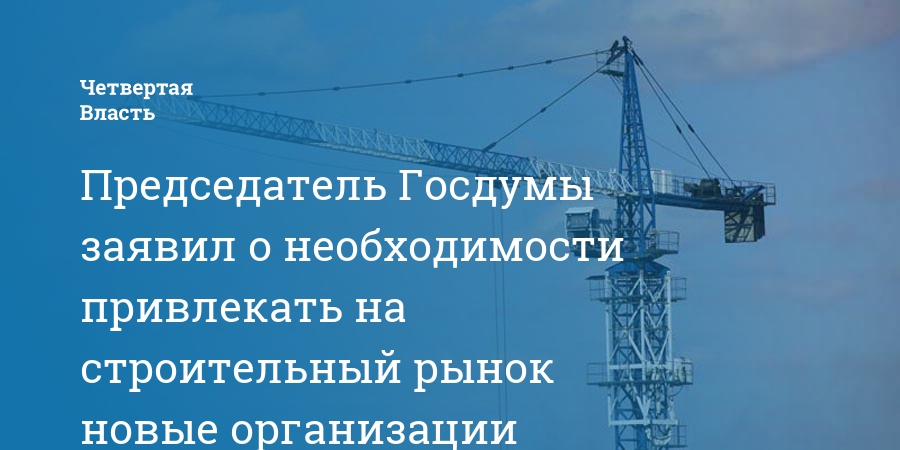 Председатель Госдумы заявил о необходимости привлекать на строительный рынок новые организации