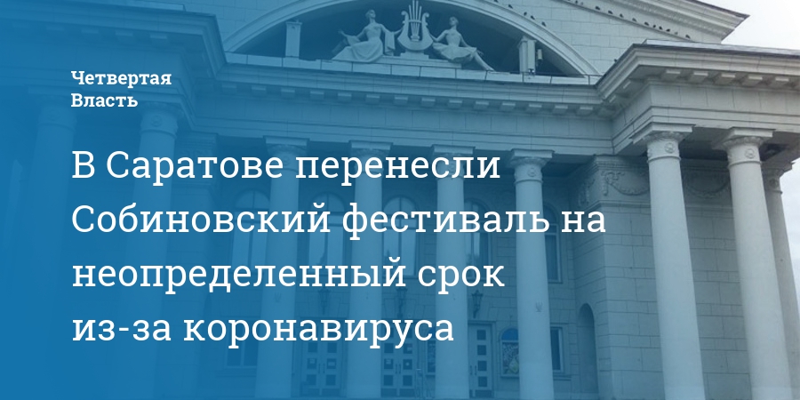 В Саратове переносится Собиновский музыкальный фестиваль на более поздний срок – до стабилизации эпидемиологичесокй обстановки. Об этом сообщается в группе «Саратовский академический ТЕАТР ОПЕРЫ И БАЛЕТА» в соцсети «ВКонтакте.