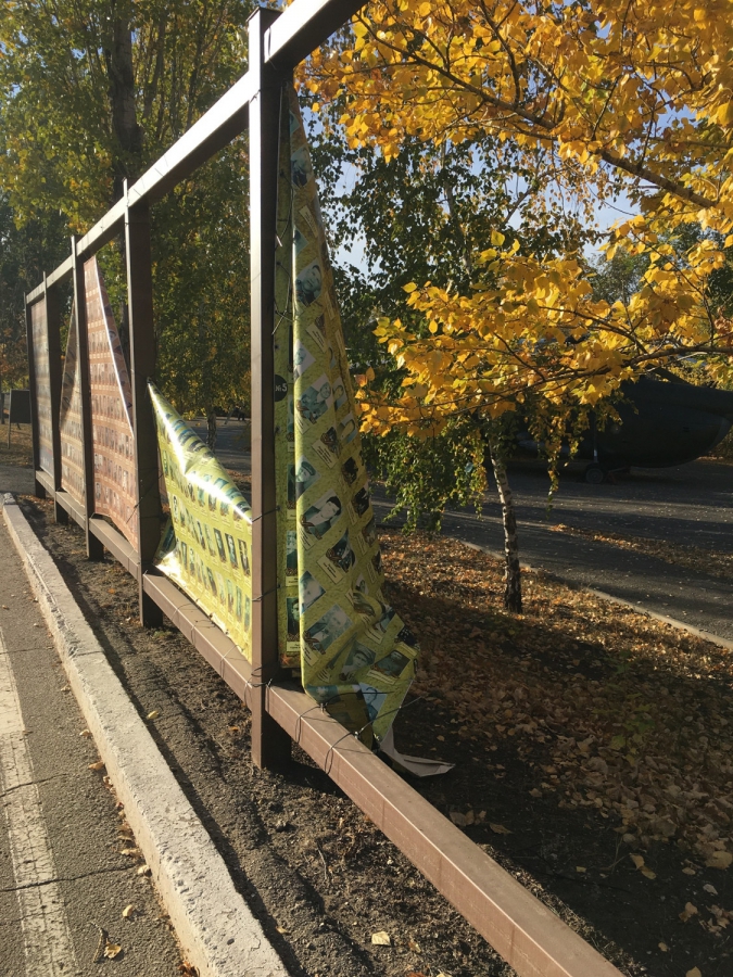 Горожане рассказали, что у входа в мемориальный комплекс видны оборванные плакаты с портретами героев войны. Как написала Елена Сергун, по дороге в парк каждый день проезжают автомобили и проходят местные жители.