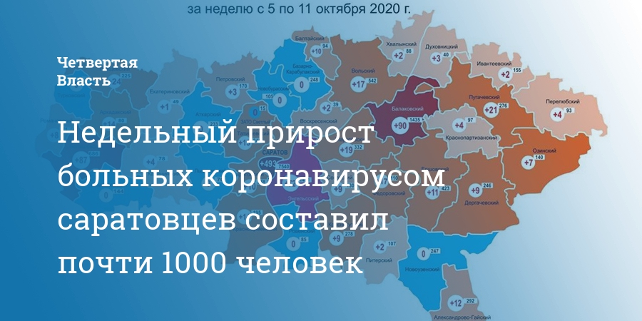 В Саратовской области за неделю общее число новых случаев заражения коронавирусом составило 993. Это следует из обновленной карта динамики прироста инфекции, где представили сведения с 5 по 11 октября.