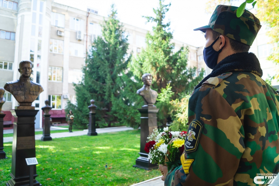 - Наш университет, в годы Великой Отечественной войны Саратовский автодорожный институт, внес достойный вклад в дело победы над врагом. Уже впервые дни войны от студентов, сотрудников и преподавателей САДИ поступило около 100 заявлений с просьбами о добровольной отправке на фронт, более половины из них – от девушек и женщин. Всего же за годы войны из института на фронт добровольно и по мобилизации ушли более 600 человек. Среди них – те, кто вернулся домой с Победой и те, кто пал смертью храбрых на полях сражений. Многие из них были награждены различными орденами и медалями. С нашим вузом связаны имена 11 человек, за мужество и отвагу, совершенные личные подвиги удостоенных самой высшей награды того времени – присвоения звания «Герой Советского Союза». Пятеро из них учились в САДИ до войны, двое поступили в институт после окончательного разгрома врага. Четверо Героев связаны с нашими колледжами. Мы открываем сегодня бюсты нашим студентам, Героям Советского Союза, в знак памяти и глубочайшей благодарности за то, что мы живем сегодня в свободной стране под мирным небом. Вечная память и слава Героям Великой Отечественной войны, - открыл мероприятие ректор СГТУ имени Гагарина Ю.А. Олег Афонин.