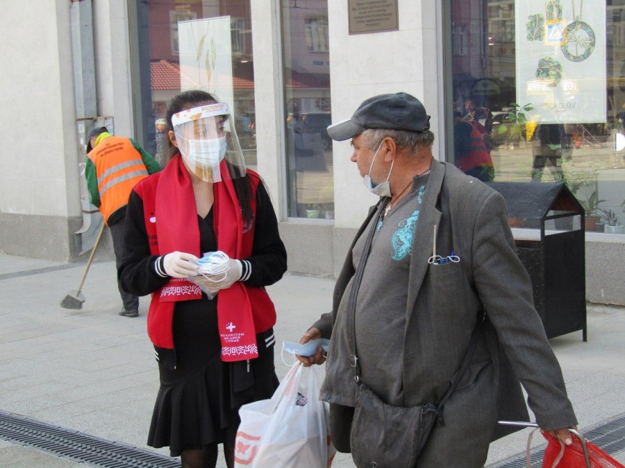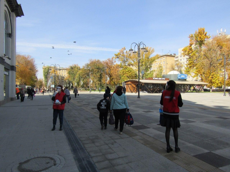В центре Саратова волонтеры начали раздавать защитные маски
