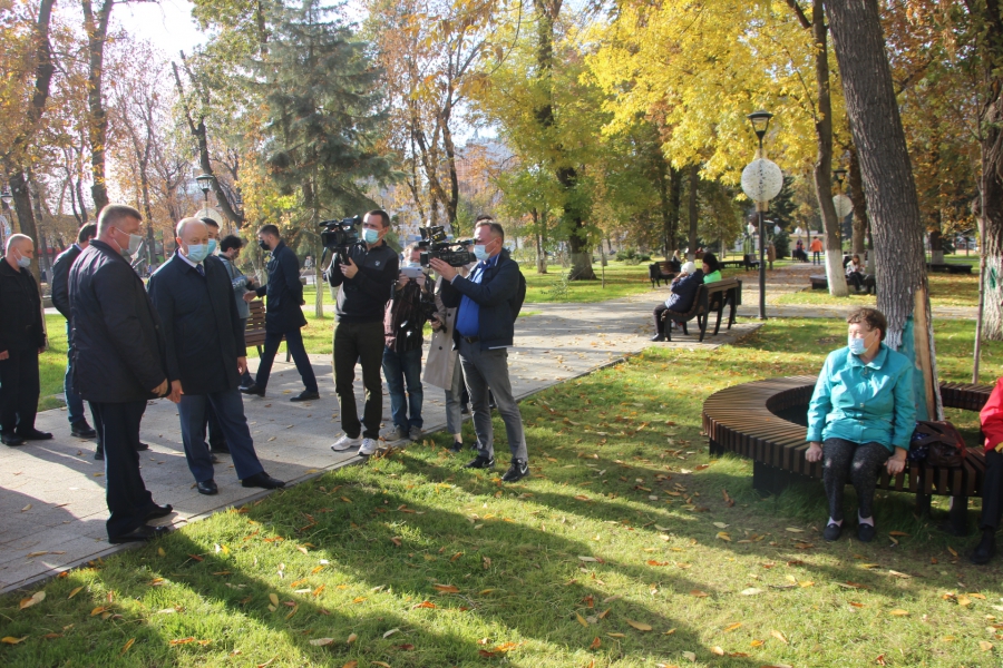 В конце прогулки делегация чиновников осмотрела детскую площадку и тропинку «звездное небо», что ведет к зданию кинотеатра «Победа».