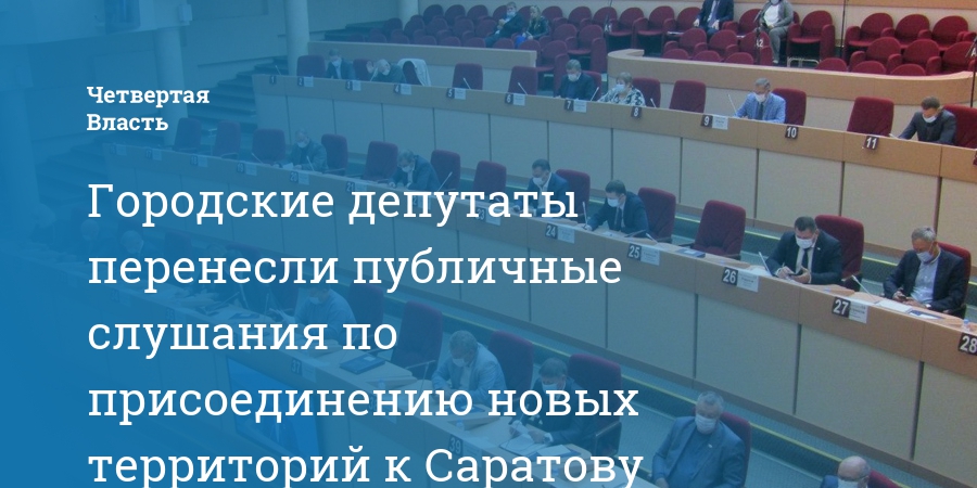 Сегодня, 15 ноября, в Саратовской городской думе депутаты приняли решение перенести публичные слушания по присоединению новых территорий к Саратову на 24 ноября из-за пандемии коронавируса. Это произошло сегодня, 15 октября, на внеочередном заседании.