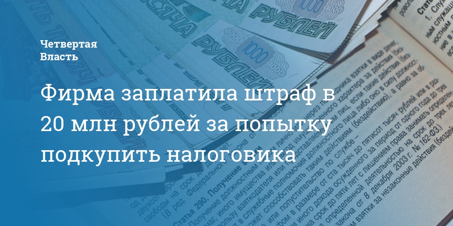 Фирма заплатила штраф в 20 млн рублей за попытку подкупить налоговика