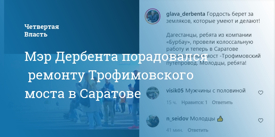 «Дагестанцы, ребята из компании «Бурбау», провели колоссальную работу, и теперь в Саратове обновлеенный мост - Трофимовский путепровод. Молодцы, ребята!» - написал Хизри Абакаров.