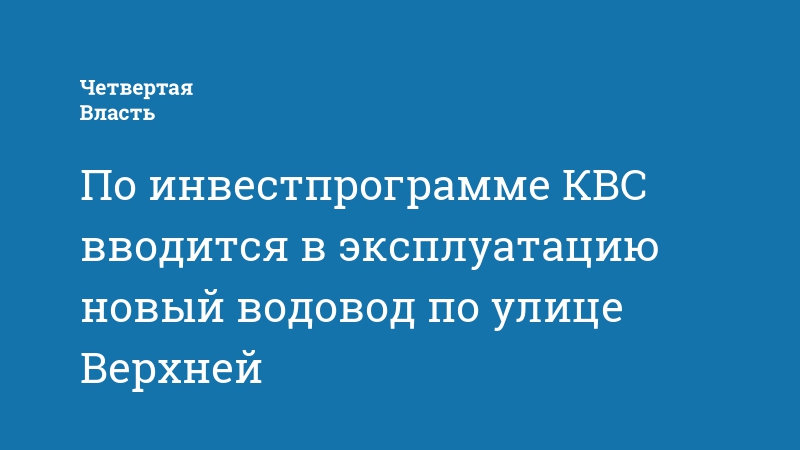 По инвестпрограмме КВС вводится в эксплуатацию новый водовод по улице Верхней