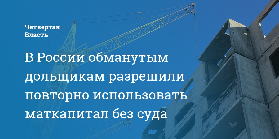 В России обманутым дольщикам разрешили повторно использовать маткапитал без суда