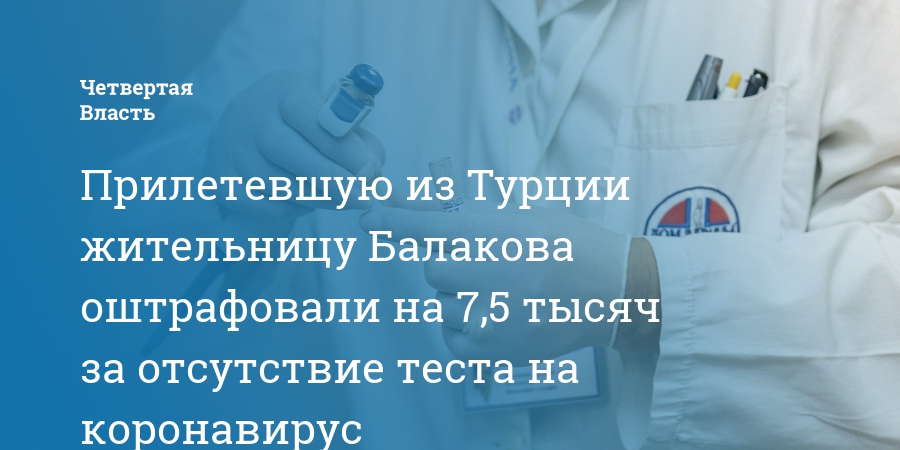 Прилетевшую из Турции жительницу Балакова оштрафовали на 7,5 тысяч за отсутствие теста на коронавирус