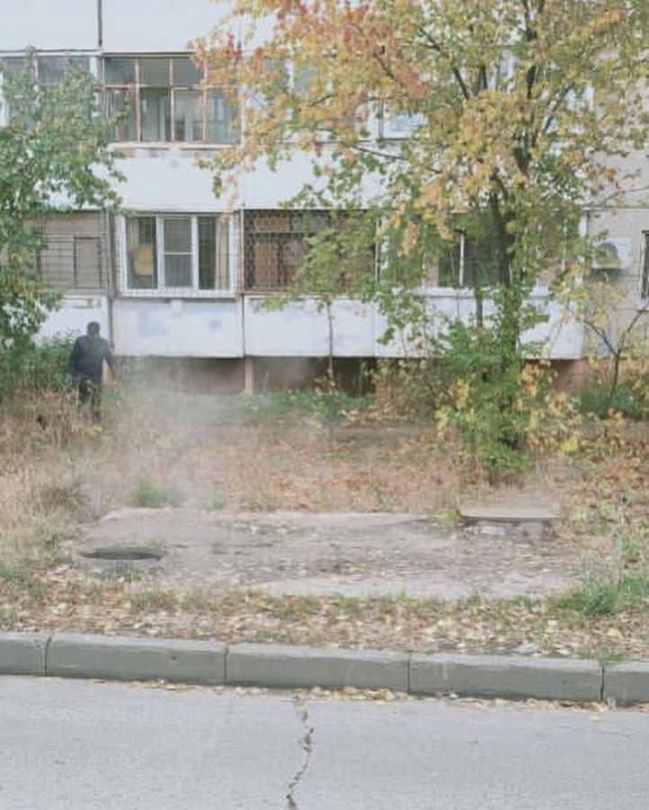 Неподалеку, ближе к многоквартирному дому, нет еще двух крышек. Судя по наличию пара из зияющей ямы, на глубине может быть горячая вода.