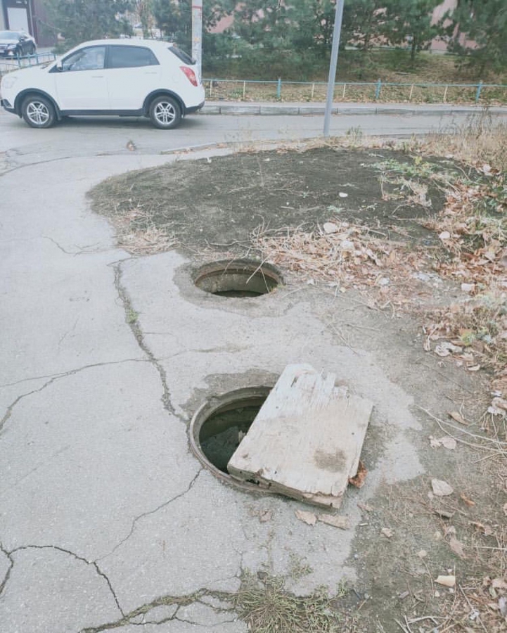 В сообществе «Типичный Юбилейный» уточняется, что речь идет об участке вокруг школы №66, расположенной на улице Державинской. Так, в одном месте прямо на тротуаре нет сразу двух крышек. Один из колодцев неизвестный прикрыл доской, но это может оказаться «медвежьей услугой»: наступив на нее, можно моментально оказаться на глубине. Находящийся рядом люк никак не огорожен и не прикрыт. Еще одна крышка пропала у колодца, расположенного возле забора (коммуникации закрыты доской).