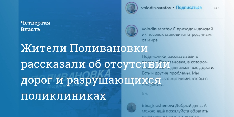 Жители Поливановки вынуждены жить практически без благоустройства, а местные поликлиники пришли в негодность. Об этом сообщается в паблике Володин. Саратов в Инстаграм*.