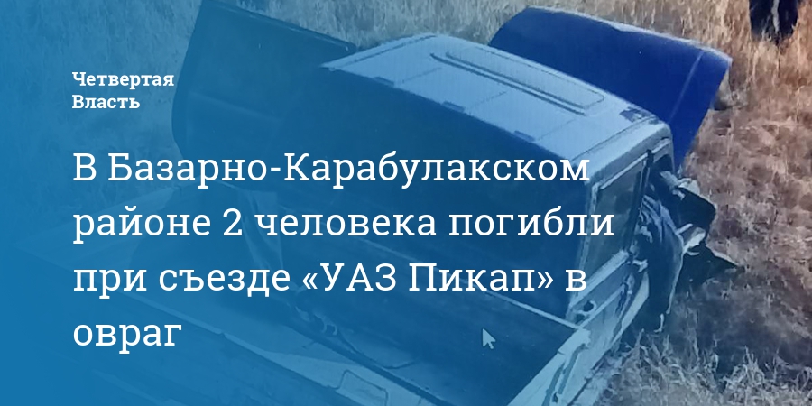 В Базарно-Карабулакском районе 2 человека погибли при съезде «УАЗ Пикап» в овраг