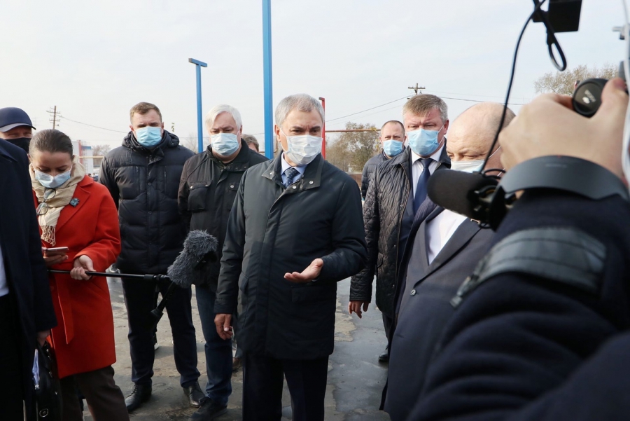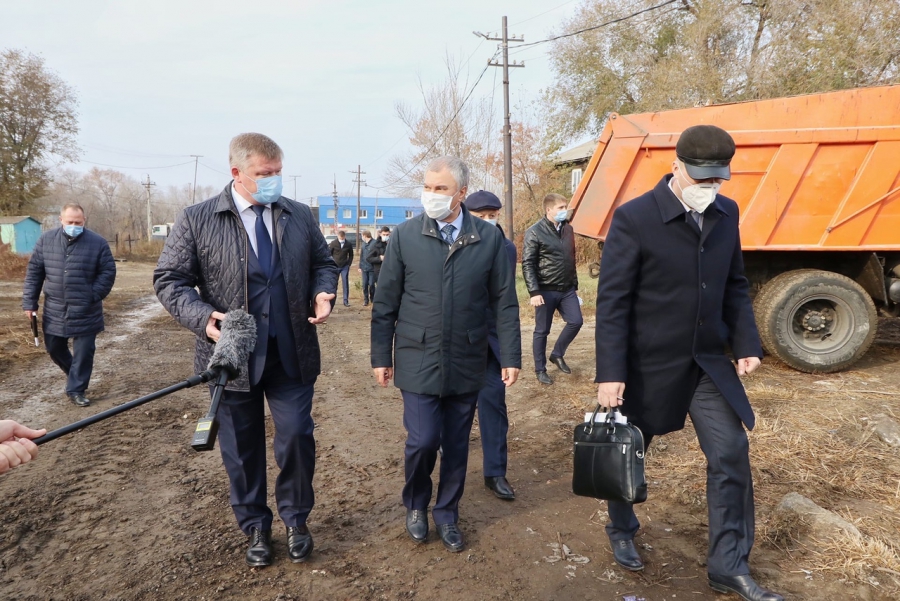 Председатель Государственной думы осматривает территорию в Елшанке, где планируют построить дома для вновь пришедших врачей скорой помощи. Об этих планах он рассказывал весной. Спикер уточнил, что здесь есть школа, детский сад и дальше планируется на будущий год строительство ледовой арены. Территория освобождена и ждет начала строительных работ.