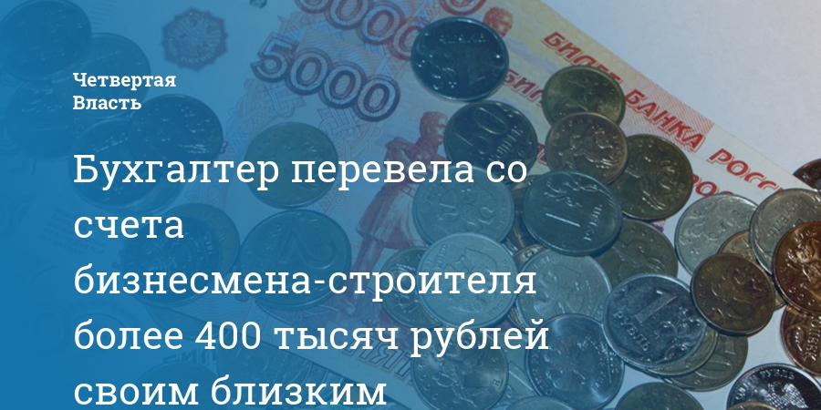 Бухгалтер перевела со счета бизнесмена-строителя более 400 тысяч рублей своим близким