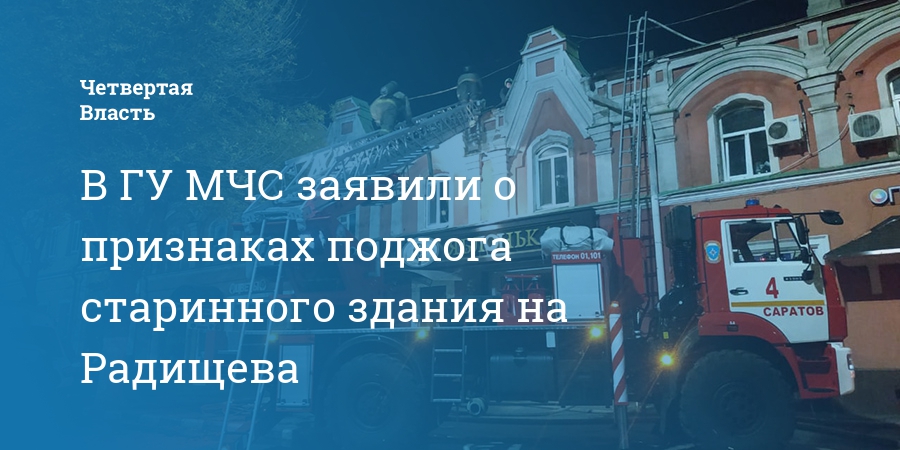 В ГУ МЧС заявили о признаках поджога старинного здания на Радищева
