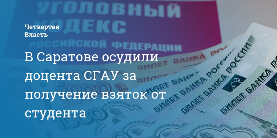 В Саратове за получение взяток от студента осудили доцента кафедры СГАУ «Бухгалтерия, анализ и аудит». Правоохранители установили, что доцент кафедры с сентябрь по ноябрь 2019 года получил 28 тысяч рублей от студента 5 курса за сдачу экзамена без проверки знаний последнего.
