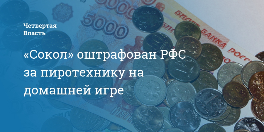 В соответствии с частью 1 статьей 114 Дисциплинарного регламента РФС и пунктом 36 Дисциплинарного регламента РФС (использование зрителями пиротехнических изделий) «Сокол» должен заплатить шесть тысяч рублей. Его директор Алексей Потапов, удаленный в последнем выездном матче года в Смоленске, дисквалифицирован на один матч. «В соответствии со статьей 16 Дисциплинарного регламента РФС не применять к начальнику команды Потапова А. (ПФК "Сокол" г. Саратов) дополнительную дисквалификацию, кроме автоматической», - гласит релиз РФС.