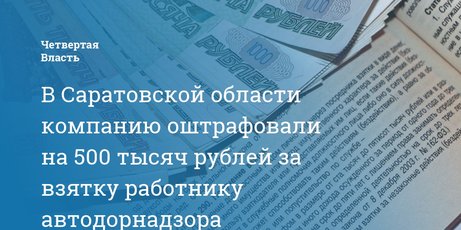 В Саратовской области компанию оштрафовали на 500 тысяч рублей за взятку работнику автодорнадзора