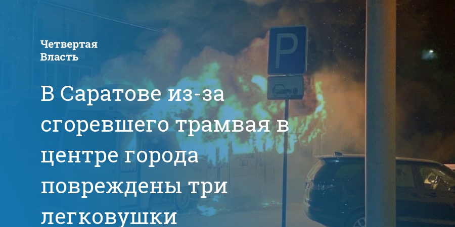 В Саратове из-за сгоревшего трамвая в центре города повреждены три легковушки