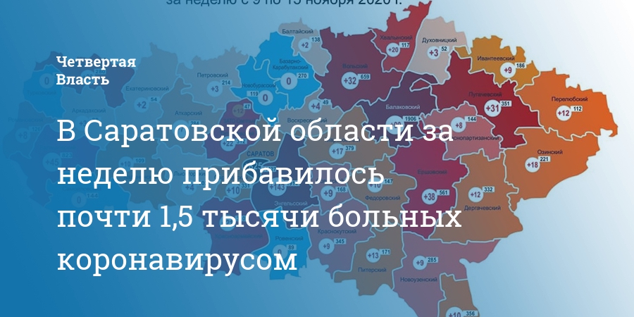 Наибольшее число инфицированных в Саратове – 825 человек. Второй по недельному приросту заболевших — Энгельсский район (+143); третий - Балаковский район (+90), на четвертом месте Балашовский район (+45).