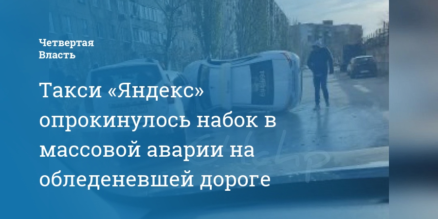 Такси «Яндекс» опрокинулось набок в массовой аварии на обледеневшей дороге