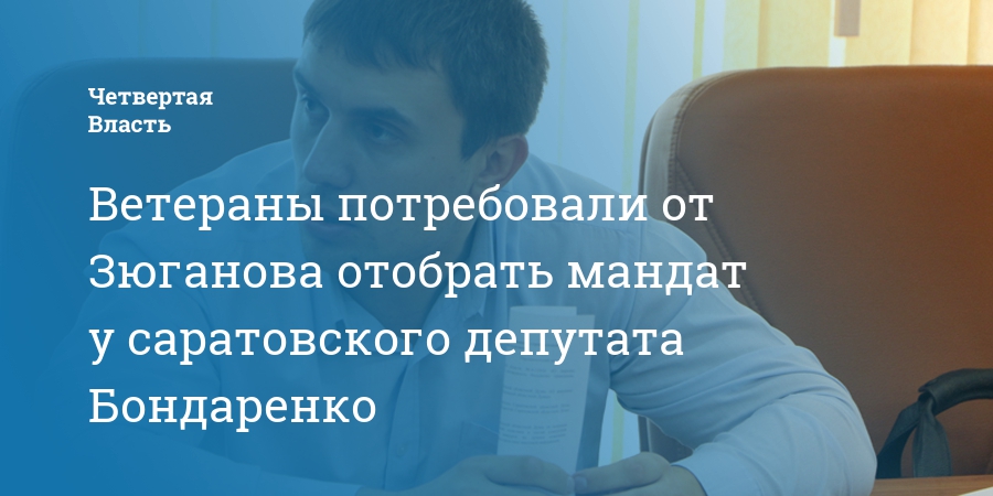 Совет ветеранов Саратовской области и патриотические организации выступили с обращением к председателю ЦК КПРФ Геннадию Зюганову из-за хамского поведения коммуниста, депутата Николая Бондаренко. В письме они пожаловались, что депутат от КПРФ позволяет себе публичные оскорбления.