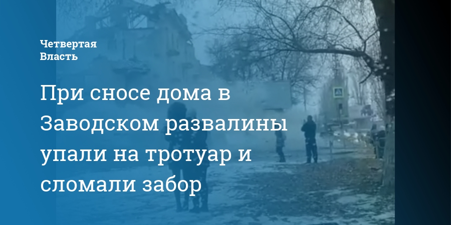 При сносе дома в Заводском развалины упали на тротуар и сломали забор