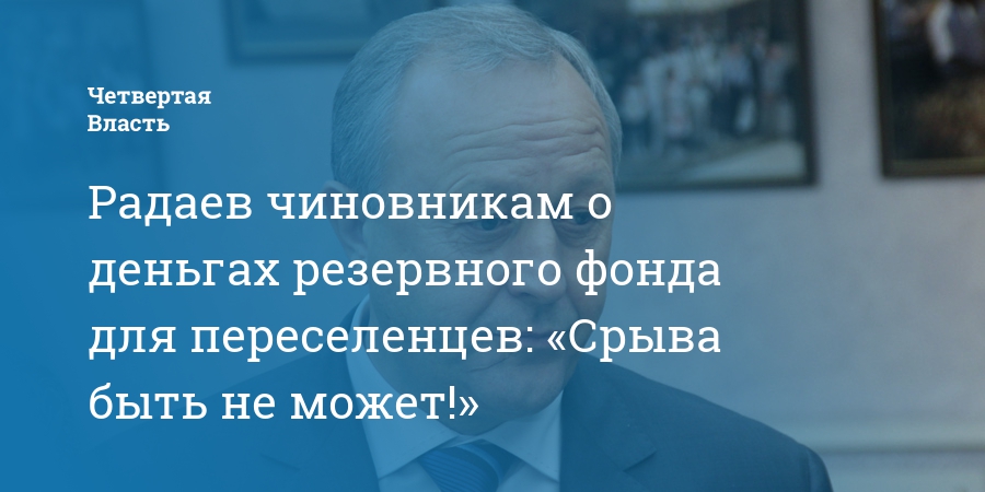 Радаев чиновникам о деньгах резервного фонда для переселенцев: «Срыва быть не может!»
