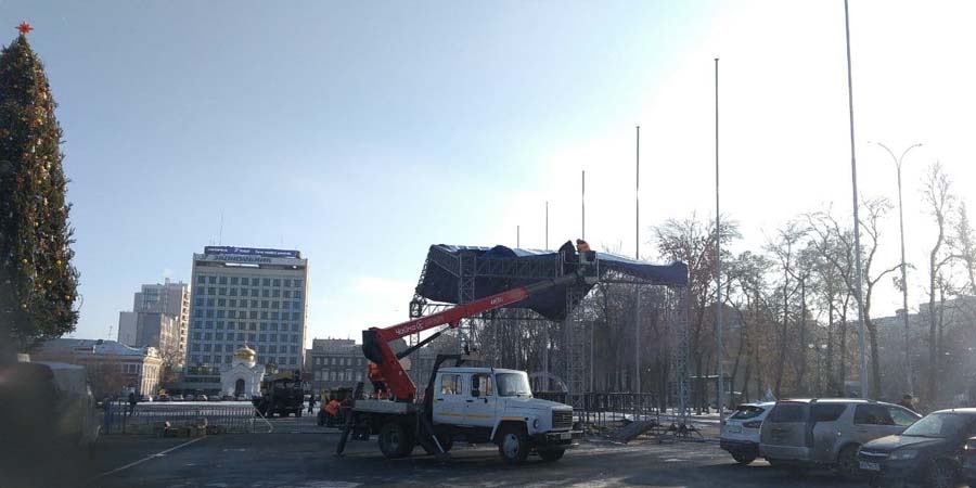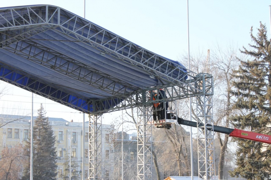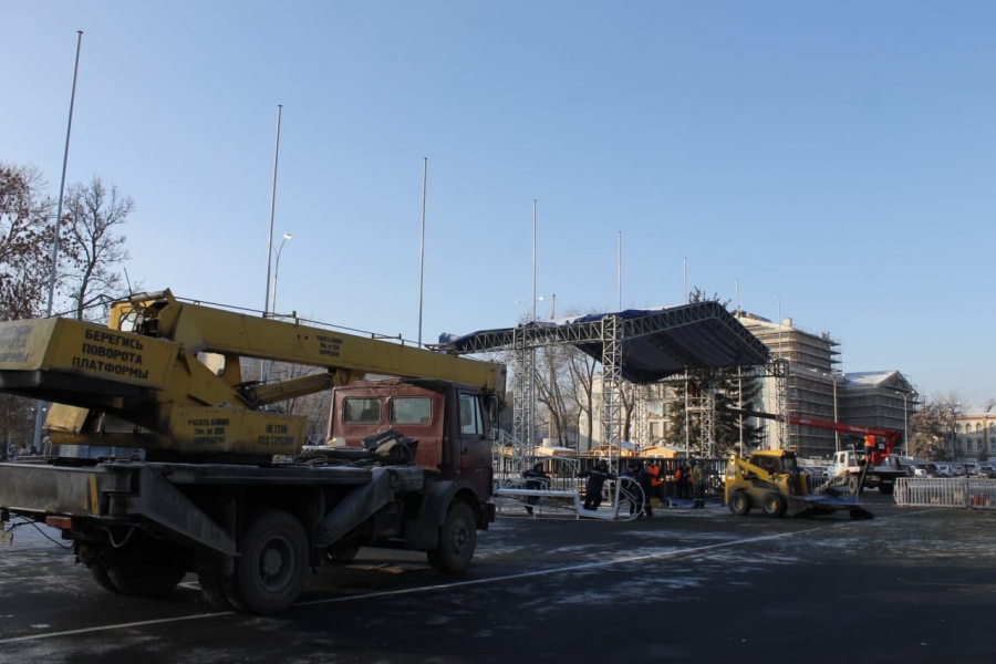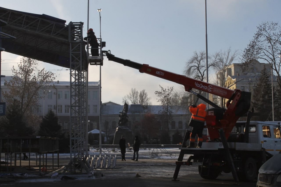 Рабочие разбирают главную городскую сцену на Театральной площади