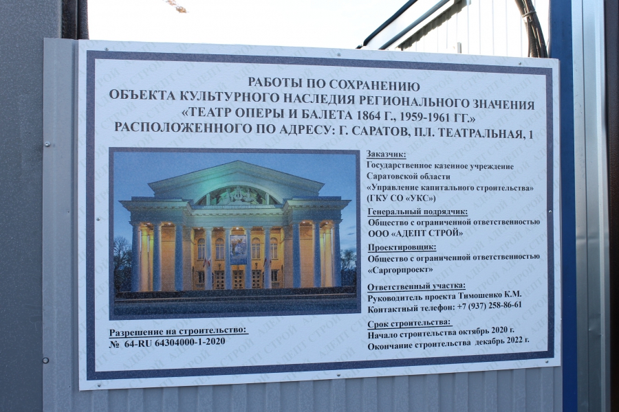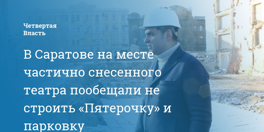 Руководитель проекта реконструкции театра и балета в Саратове Константин Тимошенко (представитель генподрядчика ООО «Адепт Строй») пообещал, что на месте снесенной части театра не появится «Пятерочка» или парковка». Об этом он заявил журналистам во время пресс-экскурсии по строительному объекту.