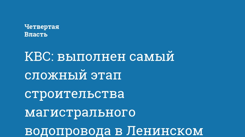 КВС: выполнен самый сложный этап строительства магистрального водопровода в Ленинском районе