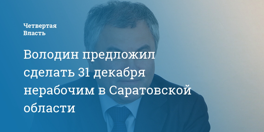 Володин предложил сделать 31 декабря нерабочим в Саратовской области