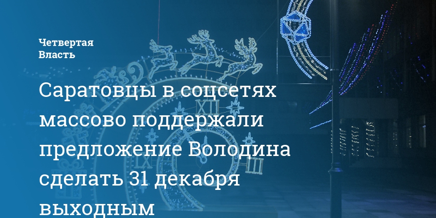 Саратовцы в соцсетях массово поддержали предложение Володина сделать 31 декабря выходным