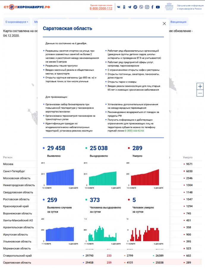 На территории Саратовской области за минувшие сутки от коронавируса скончались еще 5 человек. По данным сайта СтопКоронавирус.РФ, на 9 декабря в регионе числятся 289 жертв инфекции.