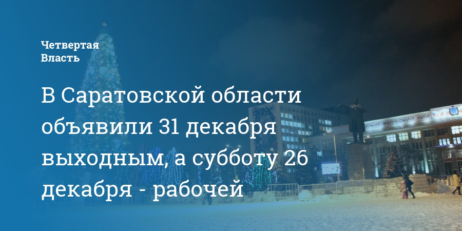 В Саратовской области объявили 31 декабря выходным, а субботу 26 декабря - рабочей