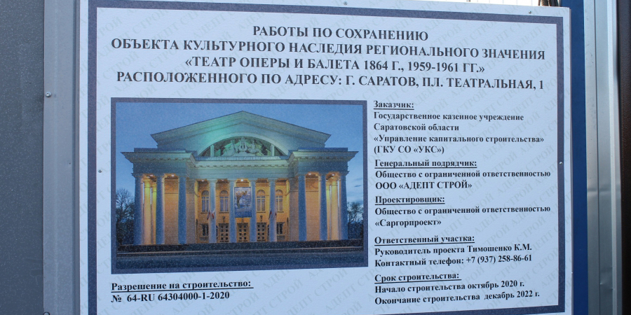 Как стало известно «Четвертой Власти», речь шла о Саратовском театре оперы и балета, который сейчас частично разрушен в рамках реконструкции. Проведение работ оценивается в 1,5 млрд рублей. После нескольких попыток отобрать подрядчика им стала компания ООО «Адепт Строй» (руководитель проекта реконструкции – Константин Тимошенко).