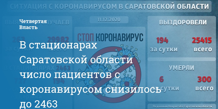 На территории Саратовской области в стационарах с подтвержденной коронавирусной инфекцией остаются 2463 человека. Такие сведения на 11 декабря опубликовали в телеграм-канале «СтопКоронавирус Саратовская область».