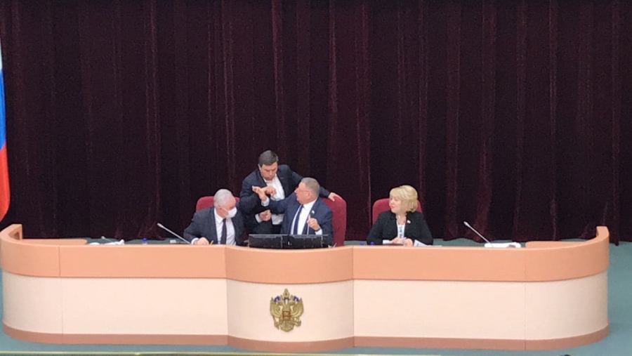 Был объявлен перерыв. Романов сказал, что этот инцидент будет разбираться Комиссией по регламенту.