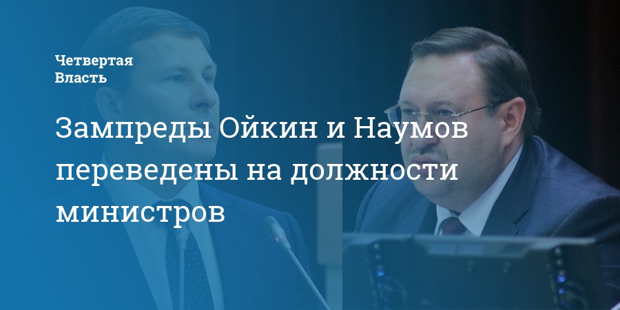 Указано, что теперь Вадим Ойкин будет министром финансов области, а Сергей Наумов – министром труда и социальной защиты. Ранее они руководили этими министерствами, но в ранге зампредов.