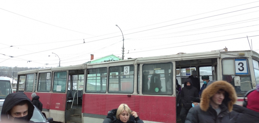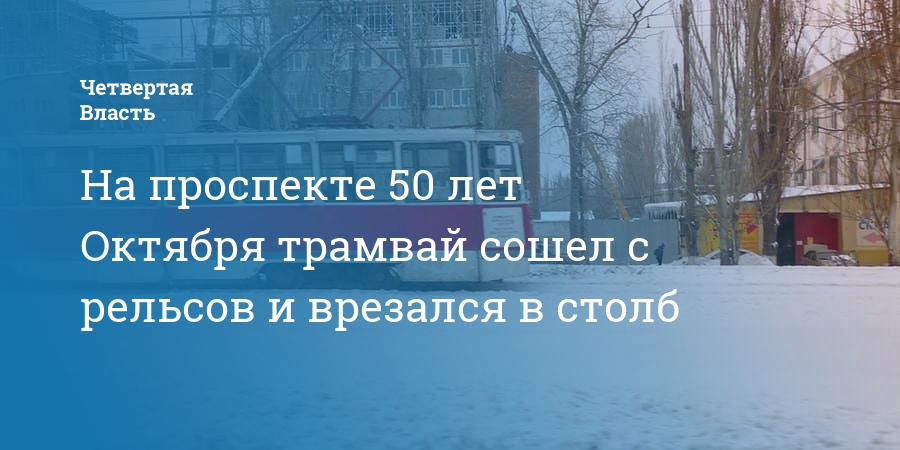 На проспекте 50 лет Октября трамвай сошел с рельсов и врезался в столб
