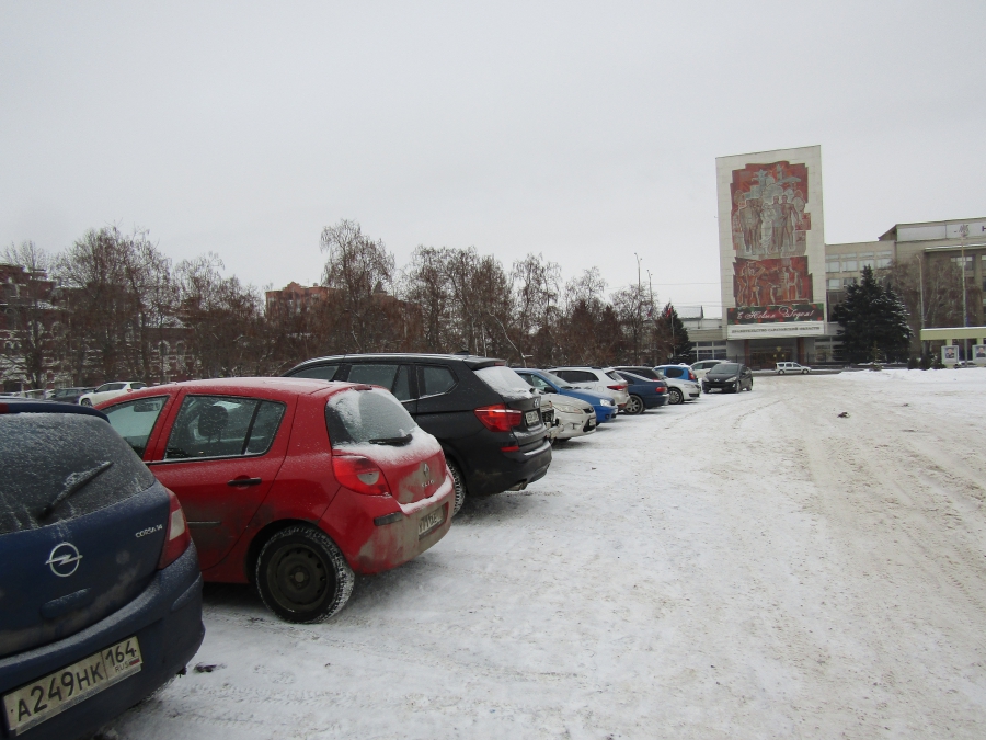 Сегодня, 13 января, на Театральной площади Саратова образовалась «парковочная зона» в два ряда. При этом постепенно начинает появляться и третий. Свидетелем этому стал корреспондент «Четвертой Власти».