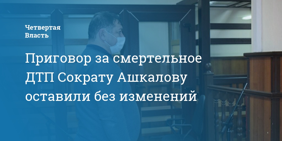 Суд первой инстанции назначил Сократу Ашкалову 4 года лишения свободы в колонии-поселении с запретом заниматься деятельностью, связанной с управлением автомобилем на 3 года. Его осудили по ч. 5 ст. 264 УК РФ (нарушение лицом, управляющим автомобилем, правил дорожного движения, повлекшее по неосторожности смерть двух лиц).