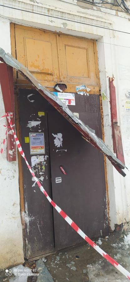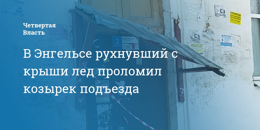 В Энгельсе Саратовской области козырек подъезда многоквартирного дома развалился после того, как на него упал лед со снегом. Как сообщил очевидец в группе «Энгельс онлайн» соцсети «ВКонтакте», лишь чудом удалось избежать человеческих жертв.