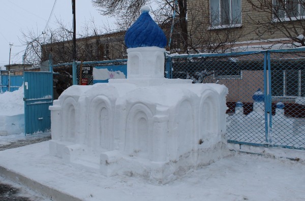 Саратовские осужденные представили на конкурс церковь и быка из снега