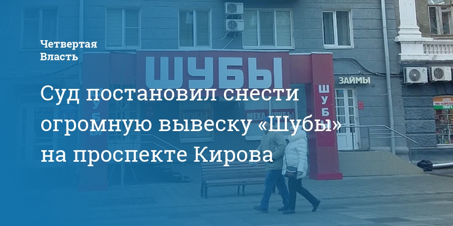 Суд постановил снести огромную вывеску «Шубы» на проспекте Кирова