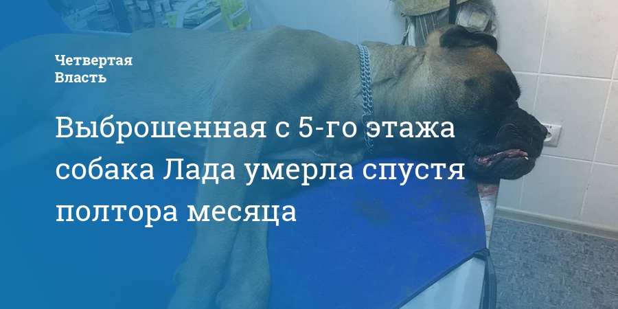 Выброшенная с 5-го этажа собака Лада умерла спустя полтора месяца
