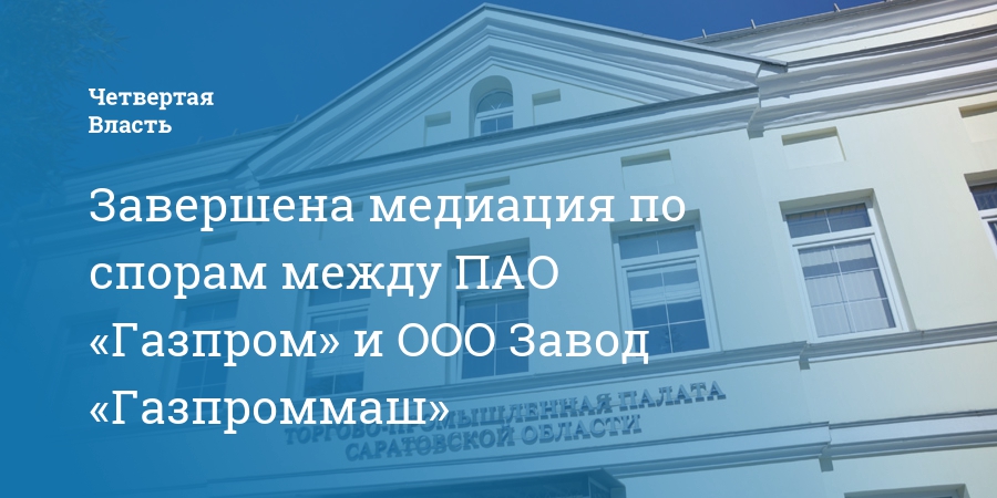 В Центр примирительных процедур при Торгово-промышленной палате Саратовской области в сентябре 2019 года поступило заявление на проведение процедуры медиации между ПАО Газпром и ООО Завод Газпроммаш. Предметом конфликта являлось использование права на интеллектуальную собственность, выраженное в схожем наименовании организаций.