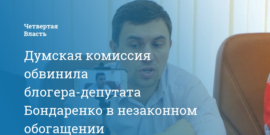 Думская комиссия обвинила блогера-депутата Бондаренко в незаконном обогащении