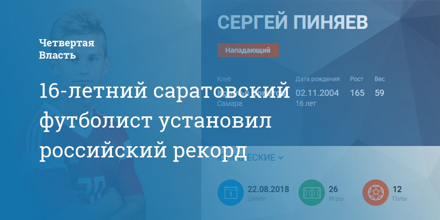 Саратовец Сергей Пиняев стал самым молодым автором дубля в истории Кубка России по футболу.